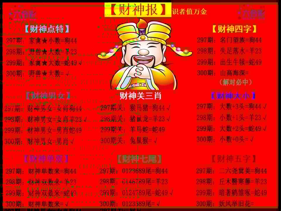 300期:千变万化 【4码中特】财源滚滚想爆富就来
