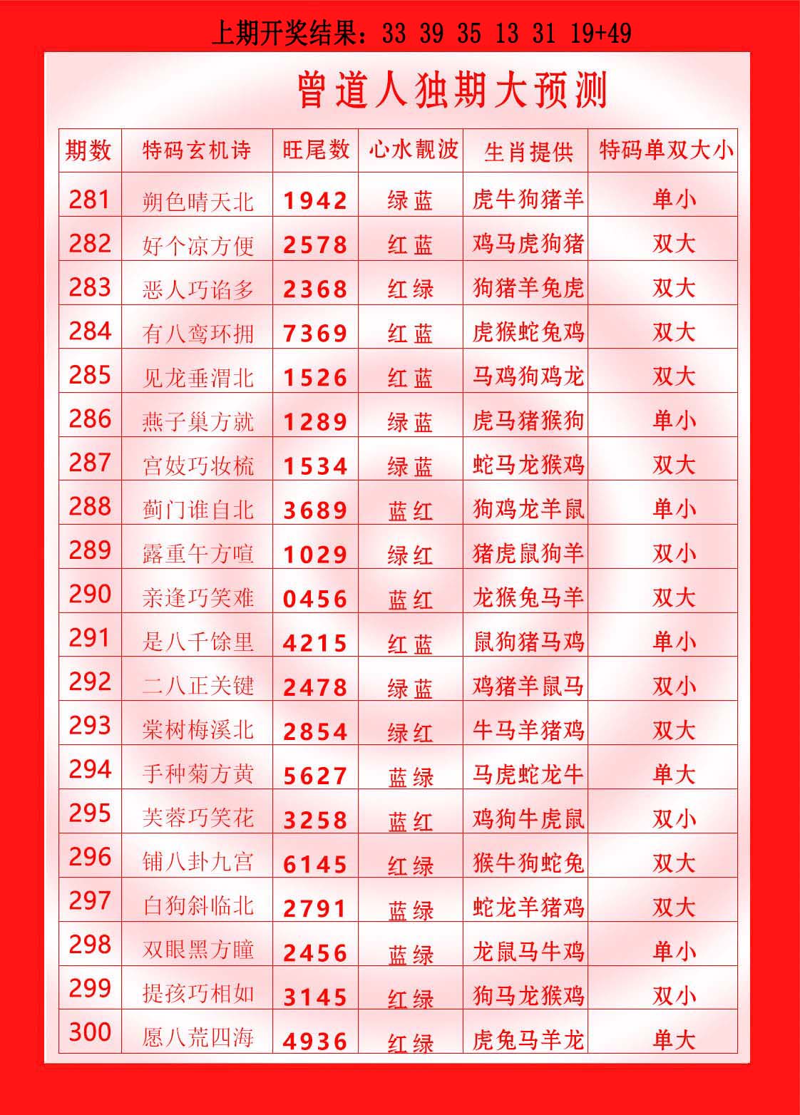 298期 虎马狗牛鸡兔龙鼠猪 开:羊23错