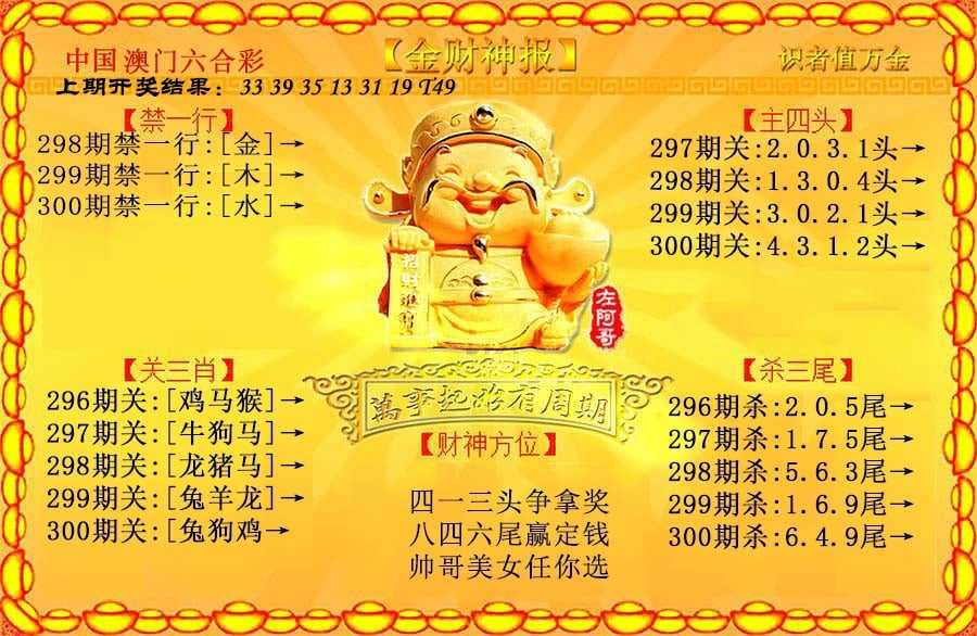 299期:财神出品 【二肖4码】庄家是你的摇钱树
